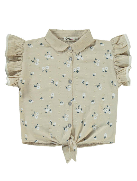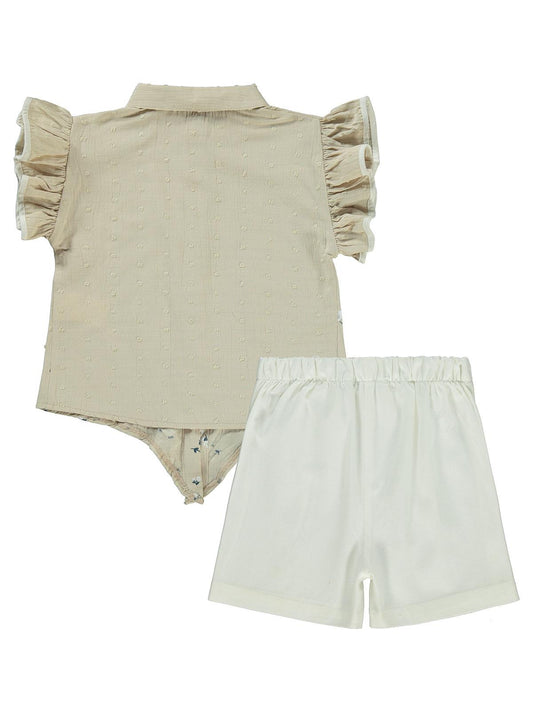 Civil girls çiçek baskılı 2-5 yaş takım - bej