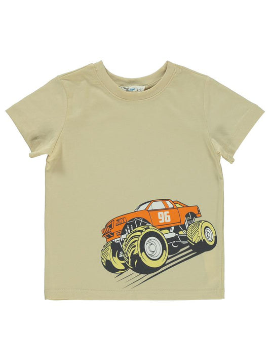 Civil boys 96 araba baskılı 2-5 yaş tişört - bej