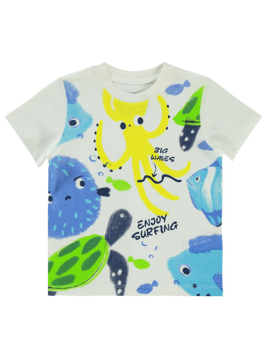 Civil boys deniz canlıları baskılı 2-5 yaş tişört - ekru