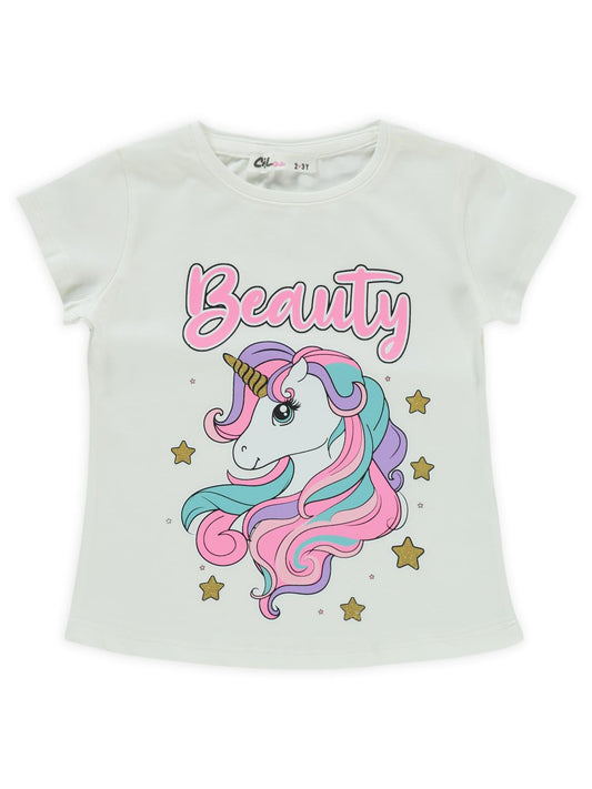 Civil girls unicorn baskılı 2-5 yaş tişört - ekru
