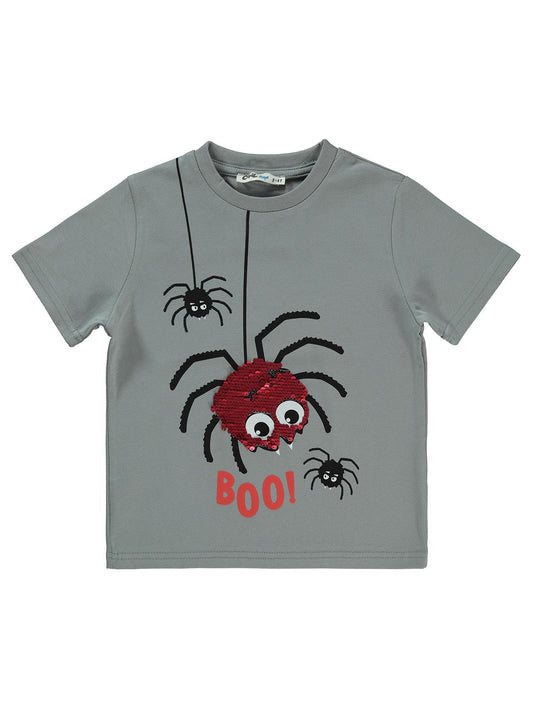 Civil boys örümcek baskılı 2-5 yaş tişört - gri