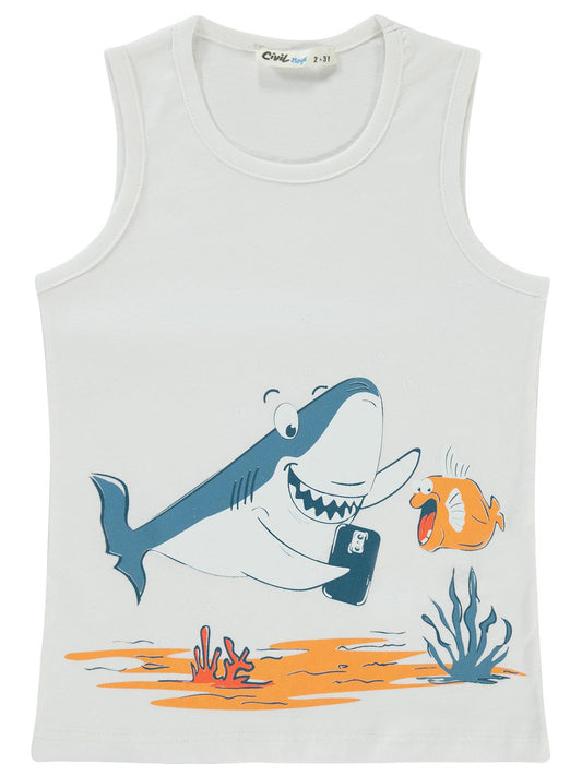 Civil boys köpekbalığı baskılı 2-5 yaş tişört - beyaz