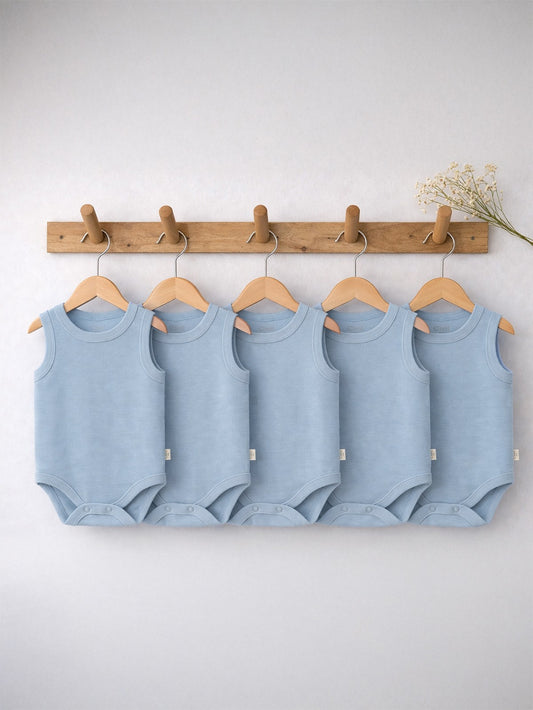 Civil baby organik 5 li sıfır kol 0-1 ay çıtçıtlı badi - mavi