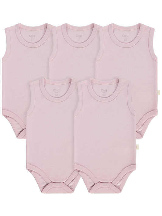 Civil baby organik 5 li sıfır kol 0-1 ay çıtçıtlı badi - pembe