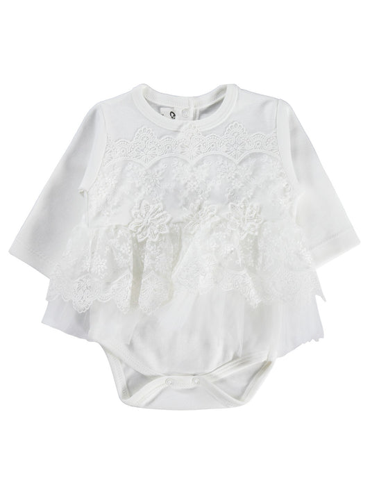 Civil baby fırfır tüllü 3-12 ay çıtçıtlı badi - ekru