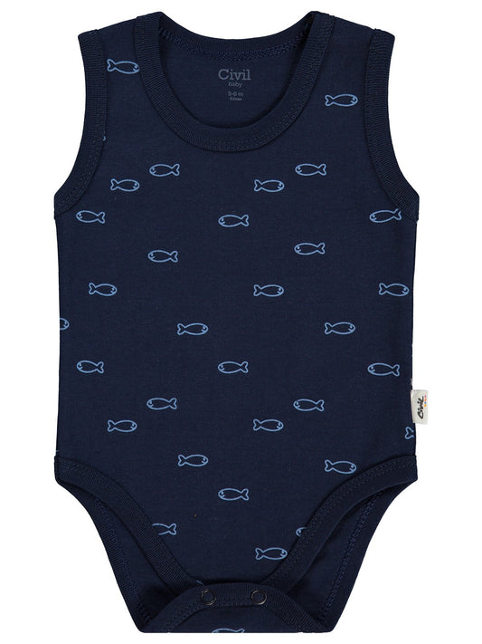 Civil baby balık empirme 0-3 yaş çıtçıtlı badi - lacivert