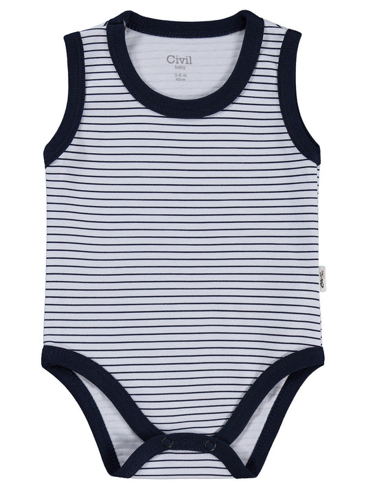 Civil baby çizgili 0-3 yaş çıtçıtlı badi - lacivert