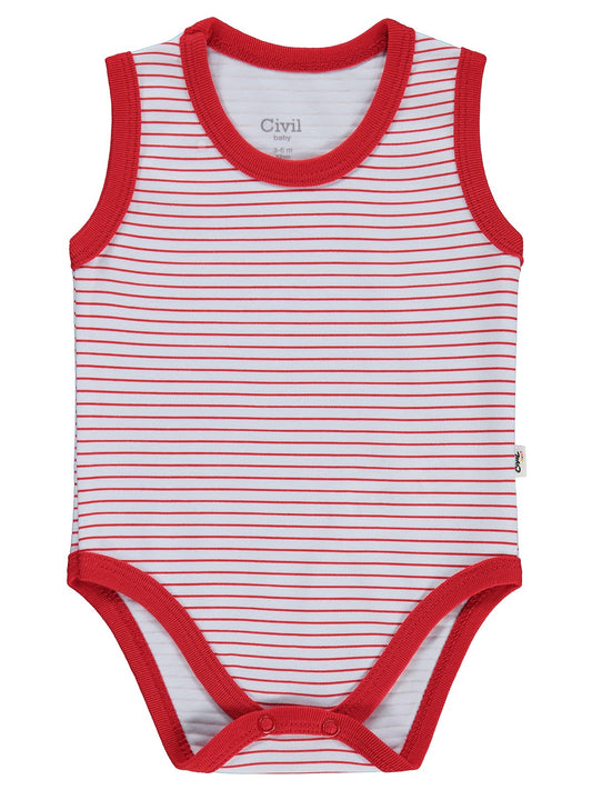 Civil baby çizgili 0-3 yaş çıtçıtlı badi - kırmızı