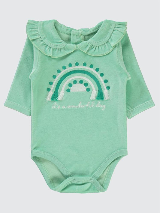 Civil baby gök kuşağı nakışlı yakalı 1-18 ay çıtçıtlı badi - yeşil