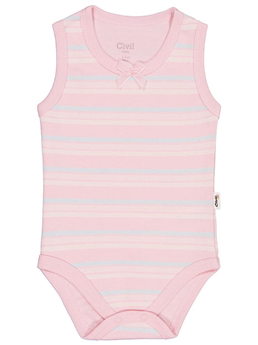 Civil baby çizgili fiyonklu 1-3 yaş çıtçıtlı badi - pembe