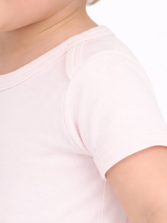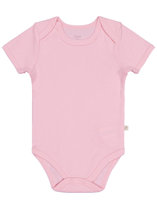 Civil baby düz renkli kısa kol 1-3 yaş çıtçıtlı badi - pembe