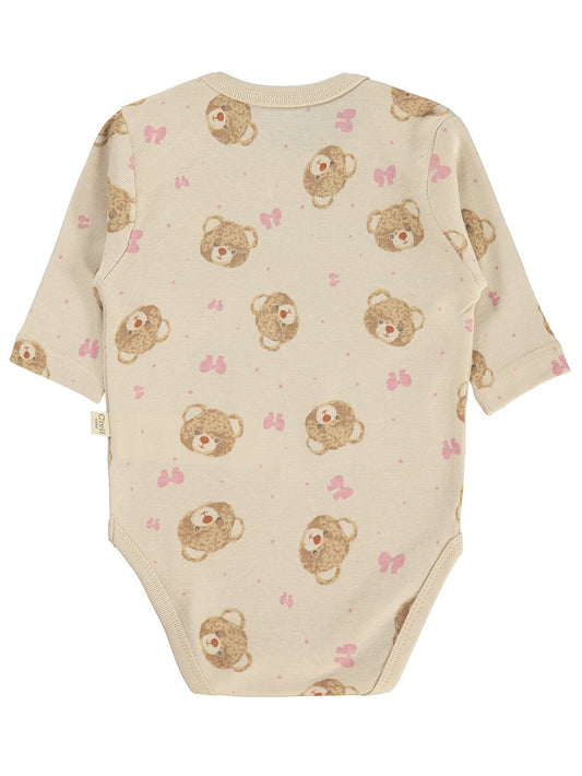 Civil baby ayıcık baskılı 1-18 ay çıtçıtlı badi - ekru