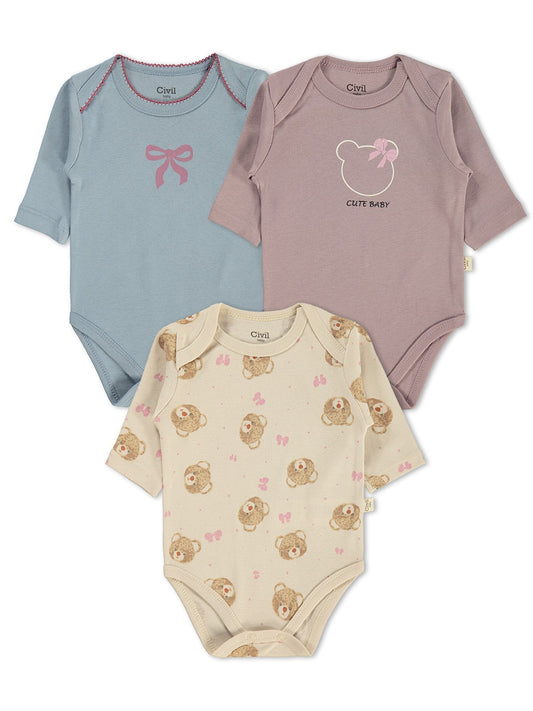 Civil baby basıc 3 lü 0-36 ay çıtçıtlı badi - pudra