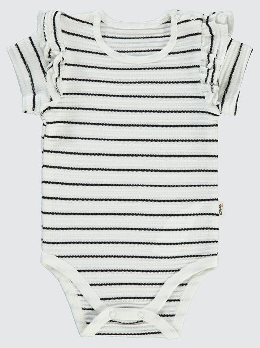 Civil baby çizgili jakarlı 1-18 ay çıtçıtlı badi - ekru