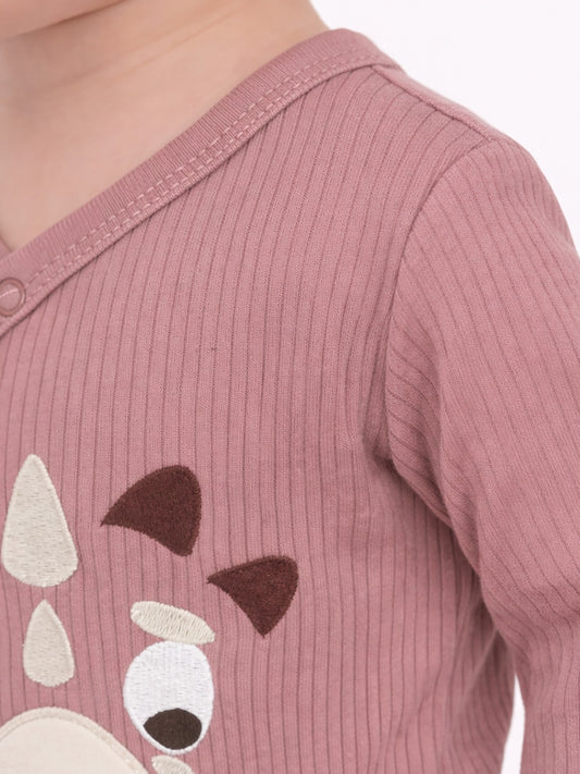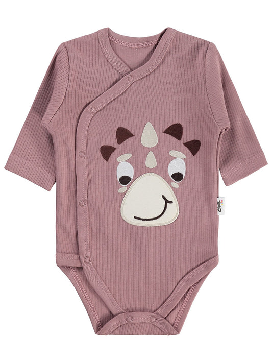 Civil baby dinozor nakışlı 1-9 ay çıtçıtlı badi - kahve