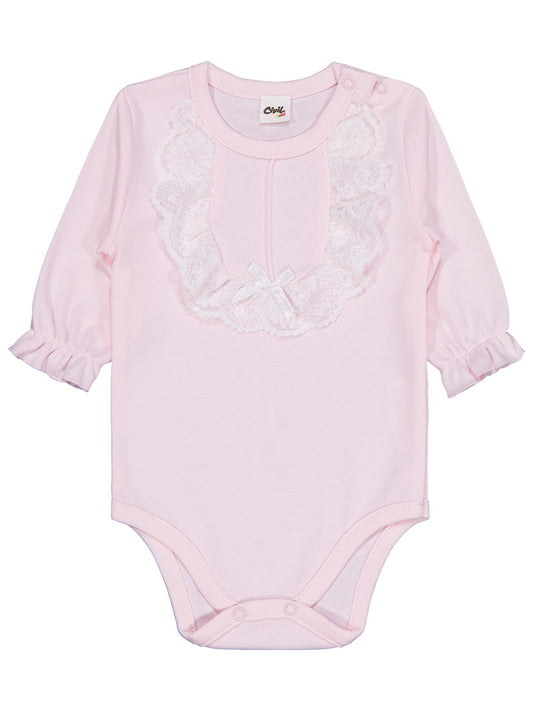 Civil baby penye i̇p askılı dantelli 3-9 ay kız çıtçıtlı badi - pembe