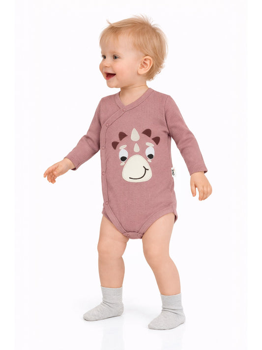 Civil baby dinozor nakışlı 1-9 ay çıtçıtlı badi - kahve