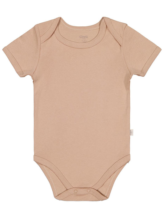 Civil baby düz renkli kısa kol 0-1 ay çıtçıtlı badi - kahverengi