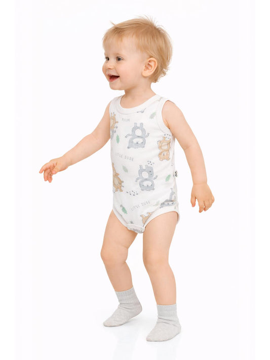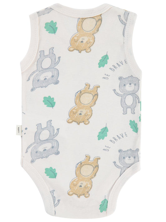 Civil baby ayıcık baskılı 0-3 yaş çıtçıtlı badi - ekru