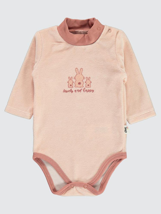 Civil baby balıkçı yaka tavşanlar baskılı 1-18 ay çıtçıtlı badi - pembe