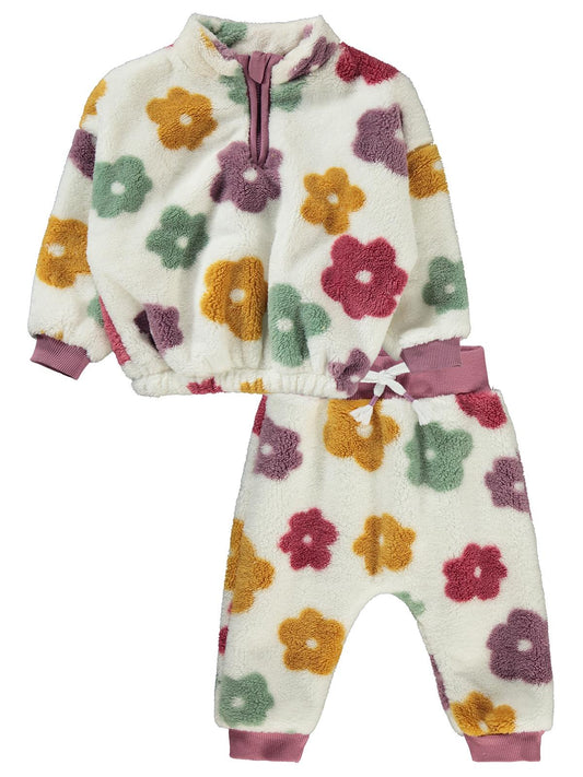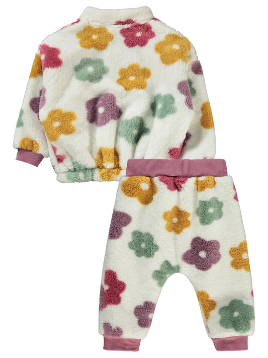 Civil baby renkli çiçek empirmeli 6-18 ay takım - ekru