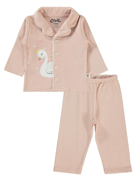 Civil baby kuğu baskılı 6-18 ay pijama takımı - pudra