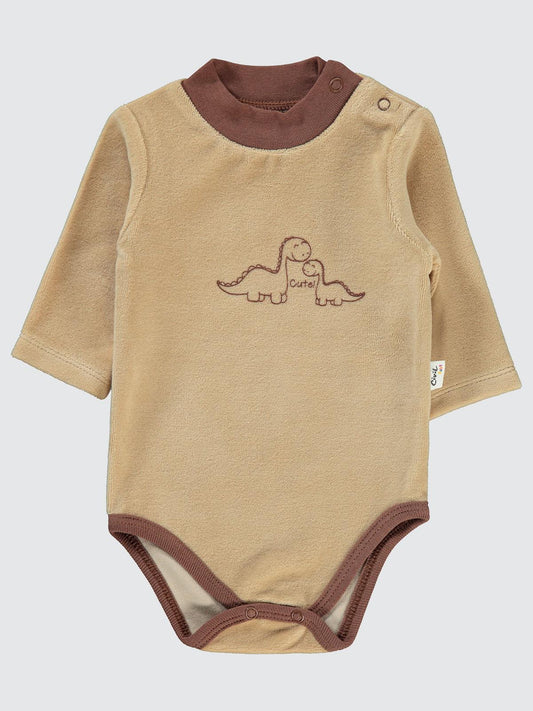 Civil baby dinozor baskılı boğazlı 1-18 ay çıtçıtlı badi - kahverengi