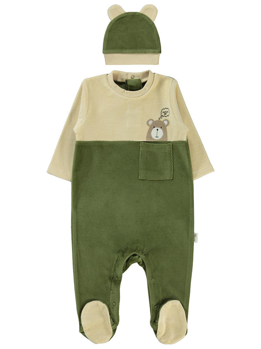 Civil baby cepli ayıcık baskılı 1-6 ay tulum - haki