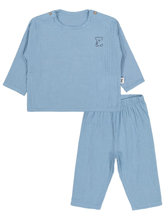 Civil baby ayıcık baskılı 6-18 ay takımı - mavi