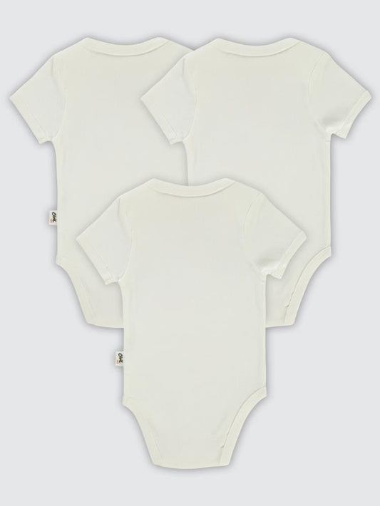 Civil baby düz kısa kol 3 lü 1-3 yaş çıtçıtlı badi - beyaz