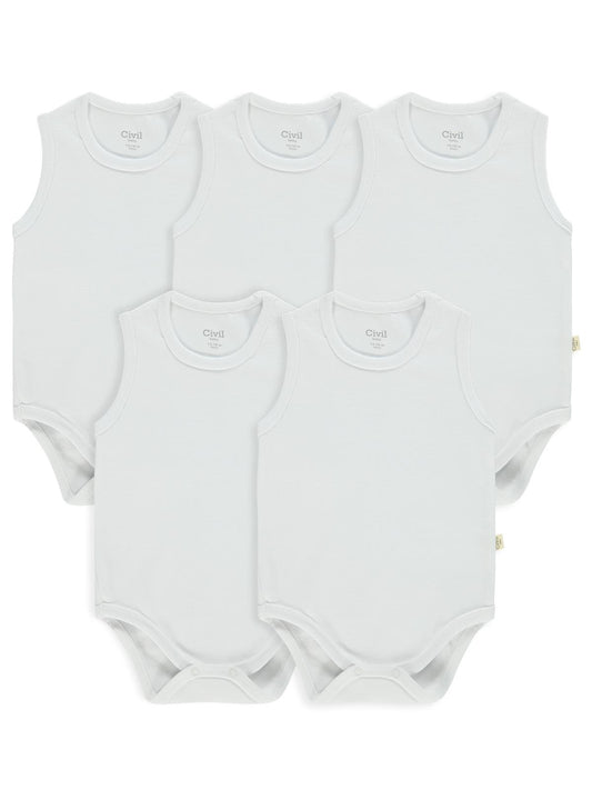 Civil baby 5 li düz basic sıfır kol 3-9 ay çıtçıtlı badi - beyaz