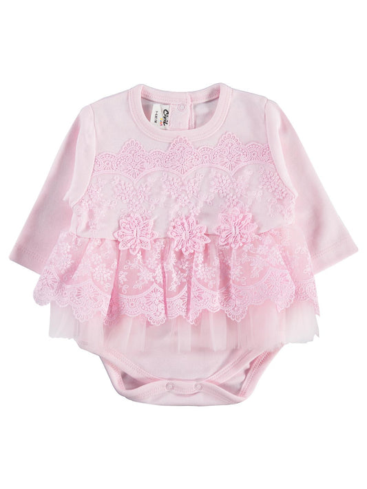 Civil baby fırfır tüllü 3-12 ay çıtçıtlı badi - ekru