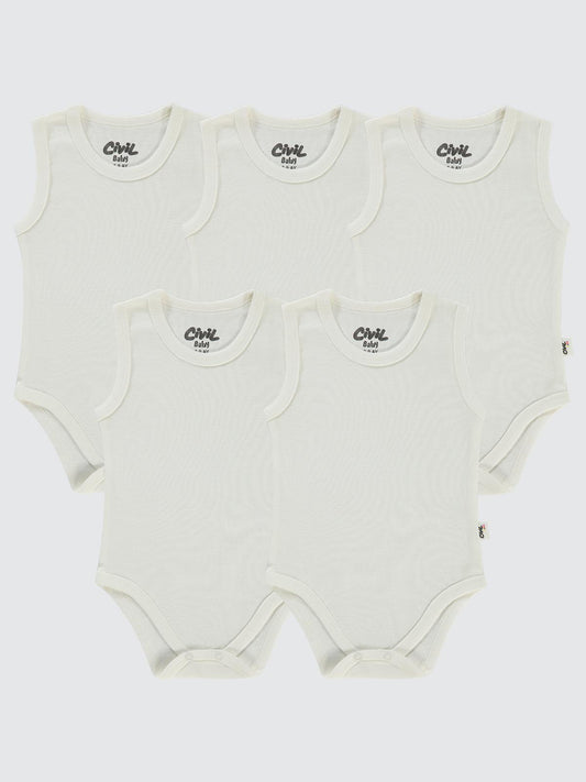 Civil baby 5 li düz basic sıfır kol 3-9 ay çıtçıtlı badi - beyaz