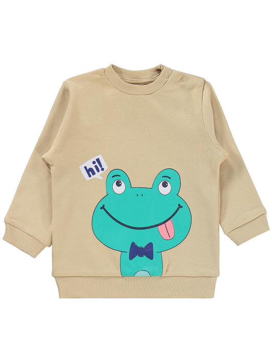 Civil baby erkek bebek kurbağa baskılı 6-18 ay takım - kahverengi