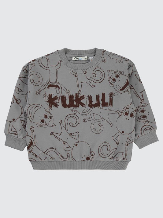 Civil boys empirme kukuli baskılı 2-5 yaş sweatshirt - gri