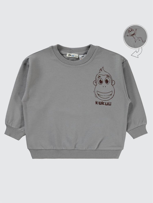 Civil boys kukuli baskılı 2-5 yaş sweatshirt - gri