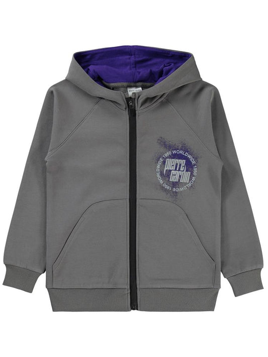Pierre cardin 1950 worldwıde baskılı 6-9 yaş hırka - gri