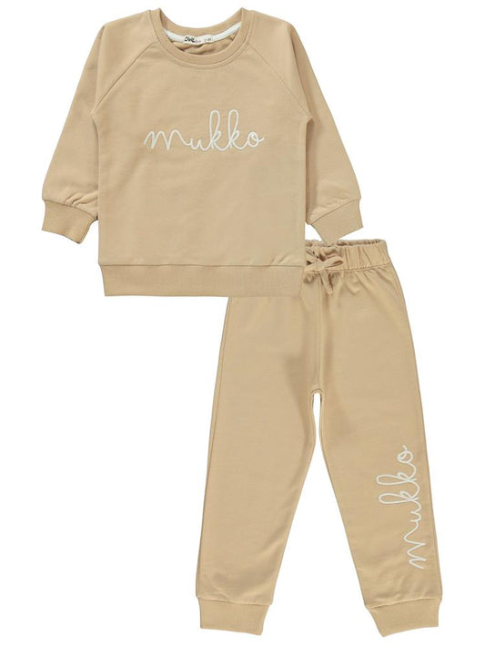 Civil girls mukko nakışlı 2-5 yaş eşofman takımı - bej