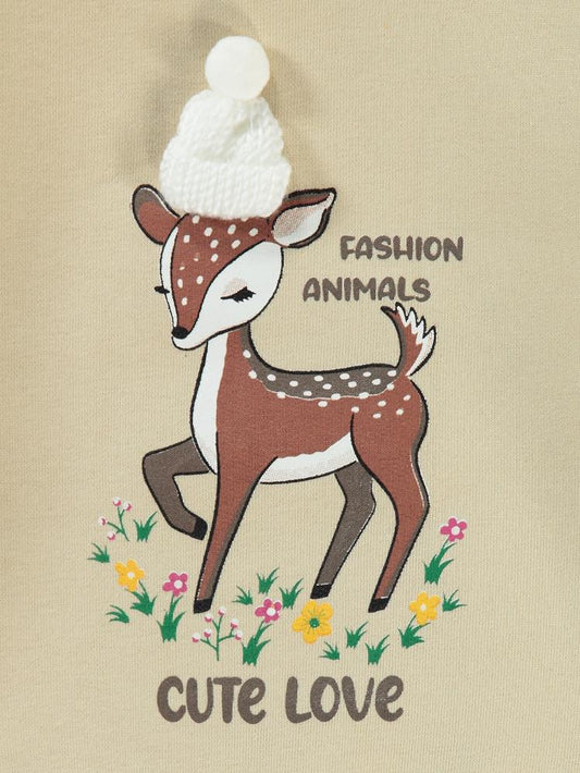 Civil girls geyik baskılı 2-5 yaş sweatshirt - bej