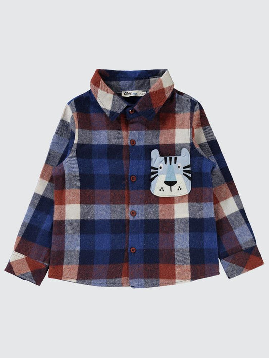 Civil boys ekoseli kaplan cepli 2-5 yaş gömlek - mavi