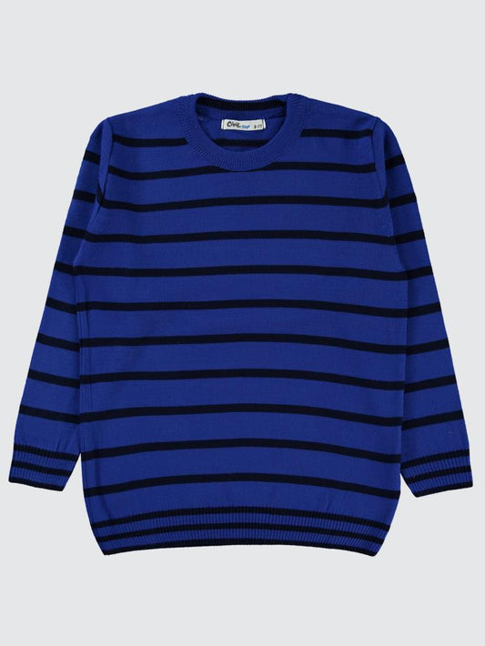 Civil boys i̇nce çizgili kazak 6-9 yaş kazak - mavi
