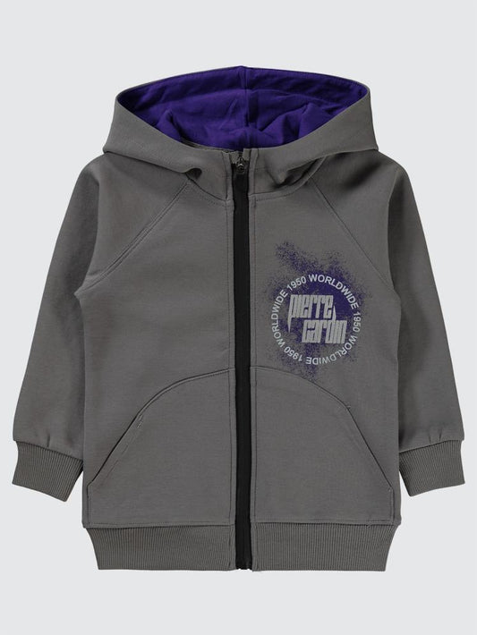 Civil boys never stay baskılı 6-9 yaş hırka - gri