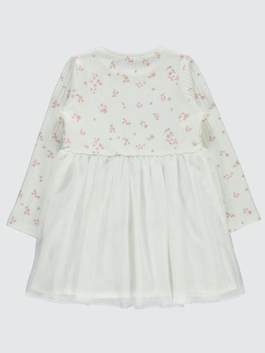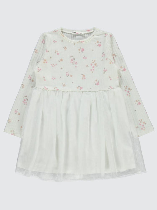 Civil girls mini yapraklı çiçek emp. 6-9 yaş elbise - ekru