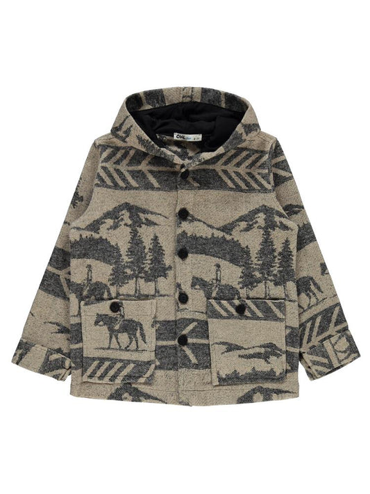 Civil boys at baskılı kapşonlu 10-13 yaş gömlek - siyah