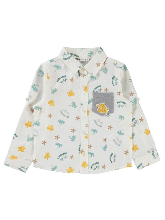 Civil boys yaprak desenli 6-9 yaş gömlek - ekru