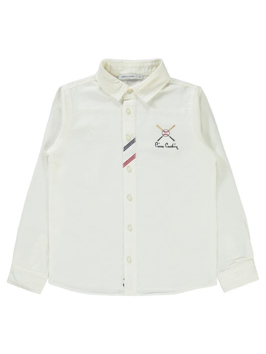 Pierre cardin patı nakışlı 6-9 yaş gömlek - ekru