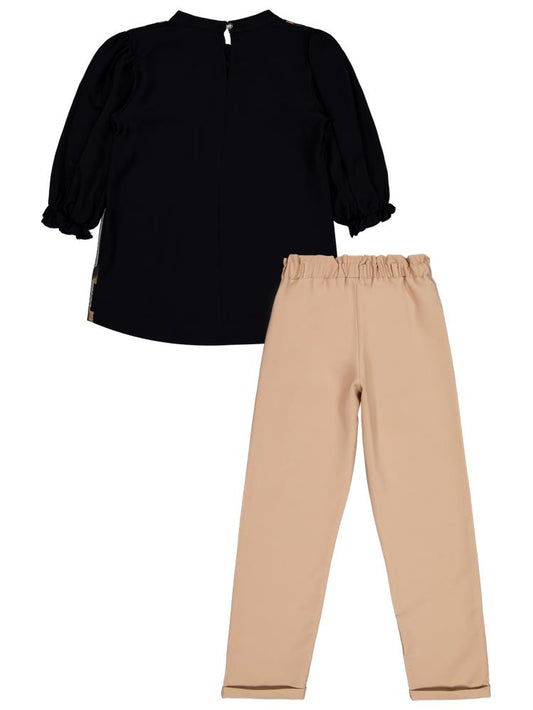 Shecco babba askıları fırfırlı kız çocuk elbise bandana takım 6-10 yaş - siyah