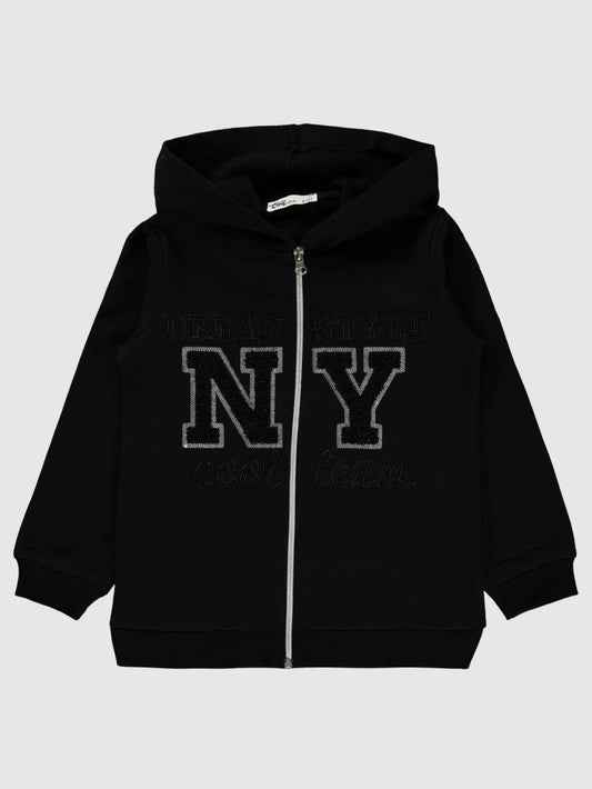 Civil girls ny nakışlı 6-9 yaş hırka - siyah