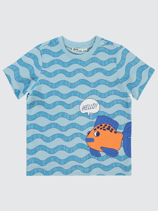 Civil boys dalga empirmeli balık baskılı 2-5 yaş tişört - mavi
