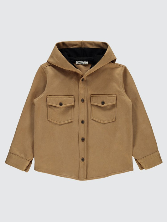 Civil boys çift cepli kapşonlu 6-9 yaş gömlek - bej